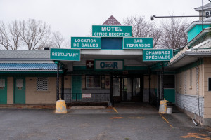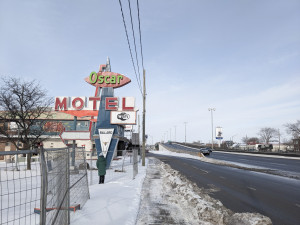 L'enseigne du Motel Oscar vue du boulevard Taschereau. Passerelles. 2023.