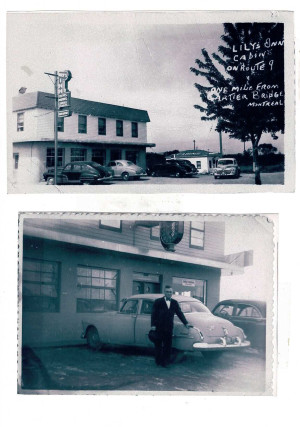 Bâtiment principal du môtel Oscar, appelé alors le Lily’s Inn, avec l’ancienne enseigne. Anonyme. Vers 1950. Photos trouvées sur place.