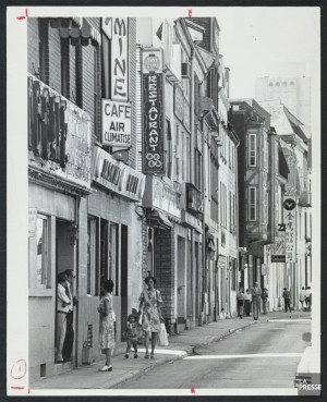 Photo : Archives de la Ville de Montréal. (1959, avril). 1106 rue Clark [photographie, Service d’urbanisme, VM097-Y-02-D003b-0160-16].