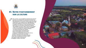 Suivant la réalisation d’un diagnostic culturel et patrimonial du territoire, la Politique, réalisée en étroite collaboration avec la municipalité, est un outil visant la bonne gestion des dimensions culturelles, artistiques, patrimoniales et historiques de la localité. Élaborée dans un souci d’application transversale, la Politique est accompagnée d’un plan d’action triennal, également réalisé par l’équipe de Passerelles. La démarche a également inclus 2 consultations publiques.